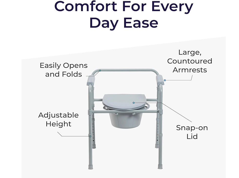 Drive Medical Folding Steel Bedside Commode Chair - Portable 3-in-1 Toilet
